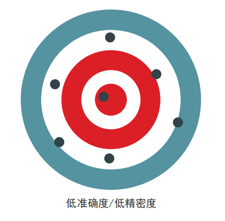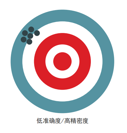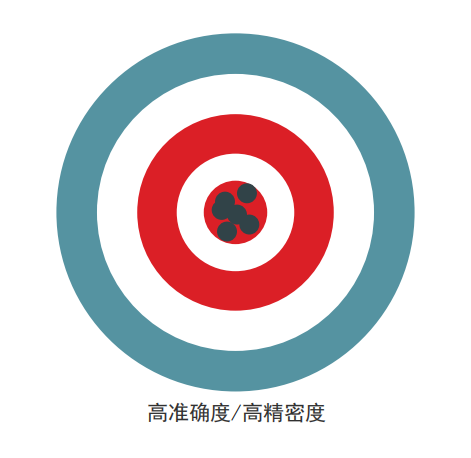 精密度是可重復(fù)性的一種度量,或者說一個檢測結(jié)果與另一個檢測結(jié)果的相近程度。準(zhǔn)確度表明所獲得的結(jié)果是否準(zhǔn)確地反映了實(shí)際情況(接近真值)。當(dāng)然,我們希望任何分析技術(shù)都能提供優(yōu)質(zhì)的精密度和準(zhǔn)確度。