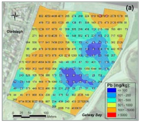 圖1. 在實(shí)施土壤修復(fù)項(xiàng)目的過程中采集到的樣本。左圖顯示為較差的采樣策略:采集的樣本數(shù)量不足,可能會出現(xiàn)大量的錯誤。右圖為正確的采樣方式:采集足夠數(shù)量的樣本,以確保場地各個區(qū)域的土壤都被檢測到。