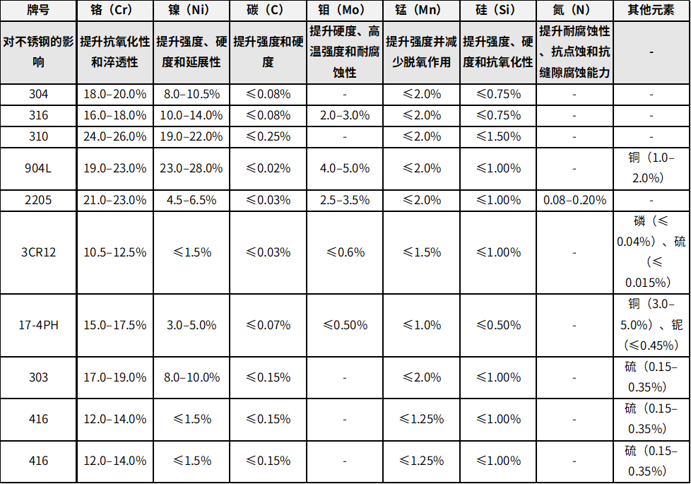不銹鋼化學(xué)成分對其性能起著決定性作用,影響產(chǎn)品的使用表現(xiàn)、成本及使用壽命。了解關(guān)鍵影響因素并核實準(zhǔn)確的化學(xué)成分,能幫助你為特定應(yīng)用場景選擇更優(yōu)方案。