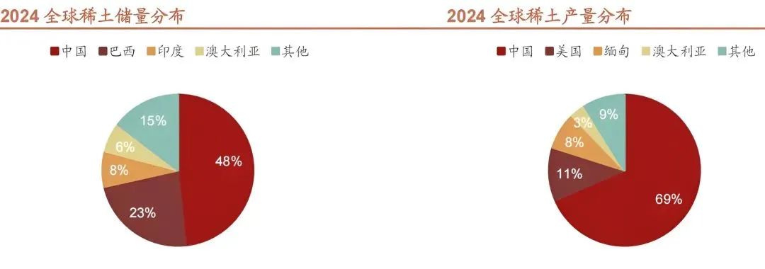 一是儲量豐富。美國地質(zhì)調(diào)查局?jǐn)?shù)據(jù)顯示,2024年中國稀土儲量達(dá)4400萬噸,占全球近49%的儲量。當(dāng)年產(chǎn)量27萬噸,占全球的69.2%。