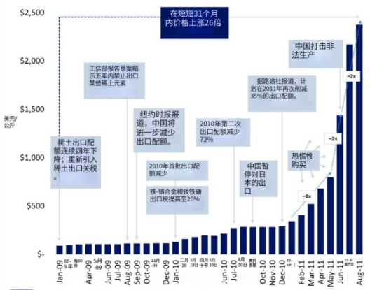 氧化鏑價(jià)格在2009年1月-2011年8月31個(gè)月內(nèi)上漲26倍